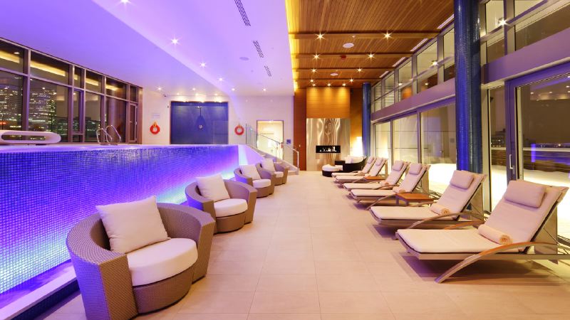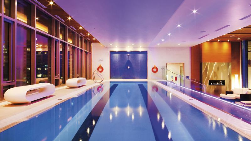 - Fitness centre with indoor pool, hot tub, and steam rooms