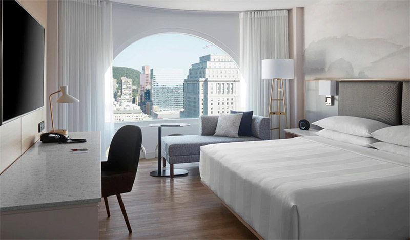 This sky-high hotel soars above the historic setting of Dorchester Square offering stunning views of Montreal’s fine architecture and beautiful waterfront. Located in the heart of Montreal, the Marriott Chateau Champlain is one of Montreal’s finest hotels. Easily recognizable by its signature half-moon windows which provide the impressive views and fill each guest room with a brilliant light, this hotel has handy underground links to public transportation (Windsor Station), the famous Bell Centre, and shopping at the Underground City. A close distance to the Circuit Gilles Villeneuve, this first-class hotel is also suitably located near the city’s nightlife attractions, historical sites and great shopping areas.