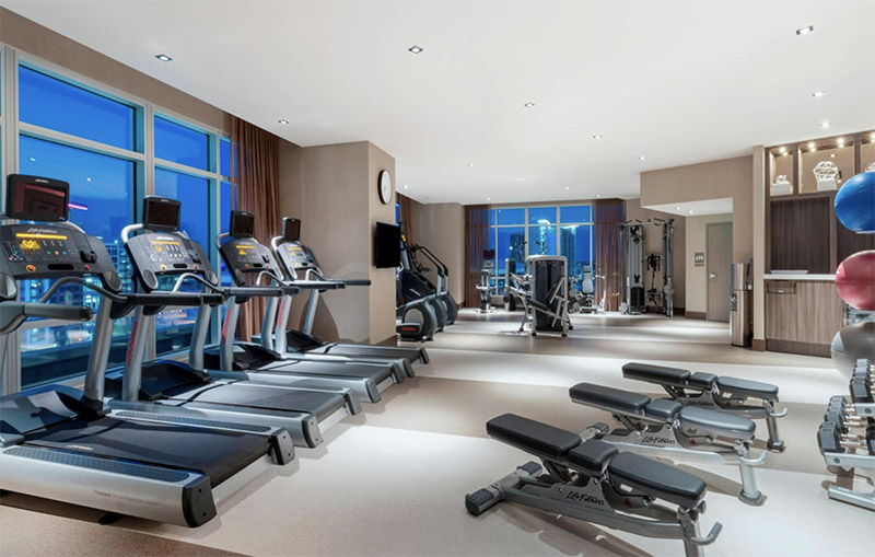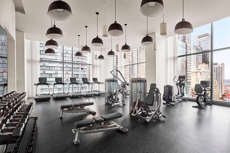 - Large fitness center with views of Manhattan