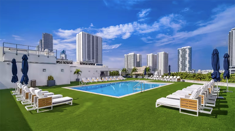 Located just steps from shops, restaurants, and bars, the well-placed Hilton Miami downtown is a great option for the Copa America Final. Looking out over Biscayne Bay, the views are stunning and there’s plenty more to enjoy from a long list of amenities. Be sure to check out the property’s impressive pool deck, complete with panoramic skyline views.